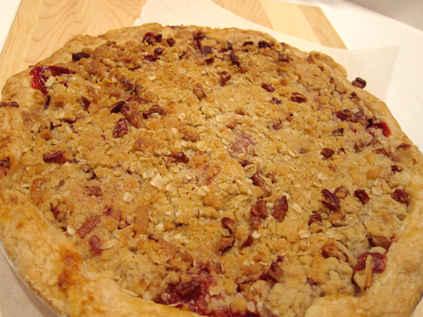 But I thought, let’s give this combination a shot. Would you believe, this was my first taste of rhubarb? Yep. I had never eaten rhubarb before in my life. I have to say that I was pleasantly surprised – it was pretty good. The pie had a nice sweetness from the apples and strawberries but I found that I really enjoyed the tanginess from the rhubarb. And the streusel topping gave the pie a nice sweet crunch! I liked that the pie itself wasn’t heavy – I still had room for a piece (or two) after a family get together. And since rhubarb season is here, why not give this recipe a try!