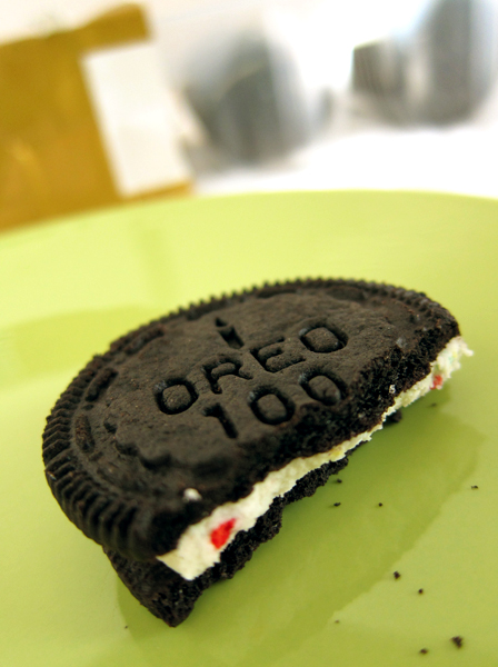 I honestly was expecting just a regular Oreo – nothing out of the ordinary, nothing special. Upon opening the bag, there’s this sweet scent that hits your nose. Not the usual smell of sugar or cookies but it actually smelled like a cake! The top of the cookie is also a designed differently than a regular Oreo. It has a picture of a birthday candle with the words Oreo 100 written on it. And when you open the Oreo, the cream center is speckled with colorful sprinkles. Just like birthday cake frosting. Very cute! But I couldn’t help wonder whether this was going to be a cookie that smelled and looked better than it was going to taste.