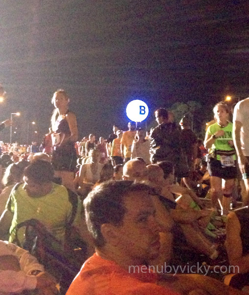 The three of us met up, dropped off our gear in the bag check tents and started to make our way to the corrals. After the slow walk yesterday morning, I wanted to make sure we had enough time and weren’t rushing. I decided to skip the porta potty lines before bag check and figured I’d find one by the corrals instead. Unfortunately, it seemed like everyone else had the same idea making the porta potty lines near the corrals REALLY long. I wasn’t in the mood to line up so I grabbed Rebecca and she was nice enough to “stand guard” while I ran over to the bushes.  Hopefully, no one had their cameras out. After that, we headed back to the corrals to wait.