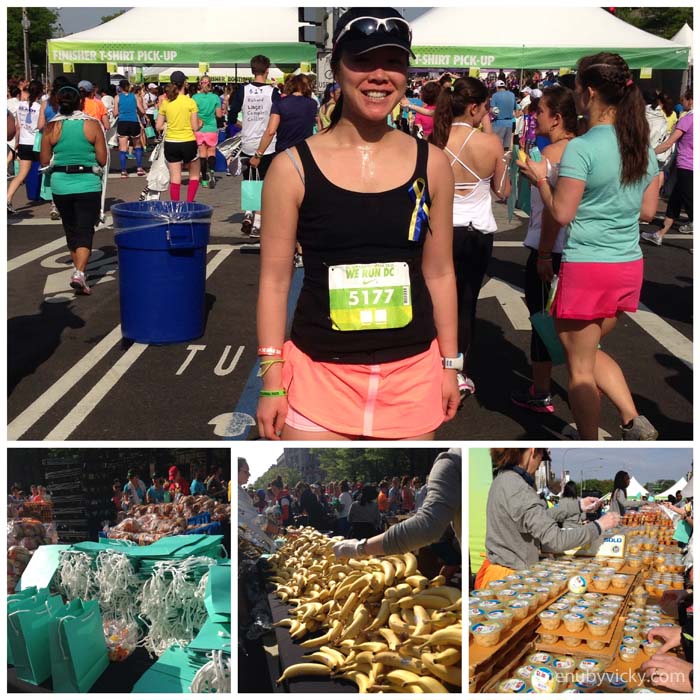 I walked through finish area and down a red carpet and to collect my Tiffany’s necklace – which is the race medal. I loved the guys standing there wearing tuxedos with piles of blue Tiffany boxes on silver trays. It was the perfect touch and different than any other race I had been to! Pretty awesome race swag if you ask me!