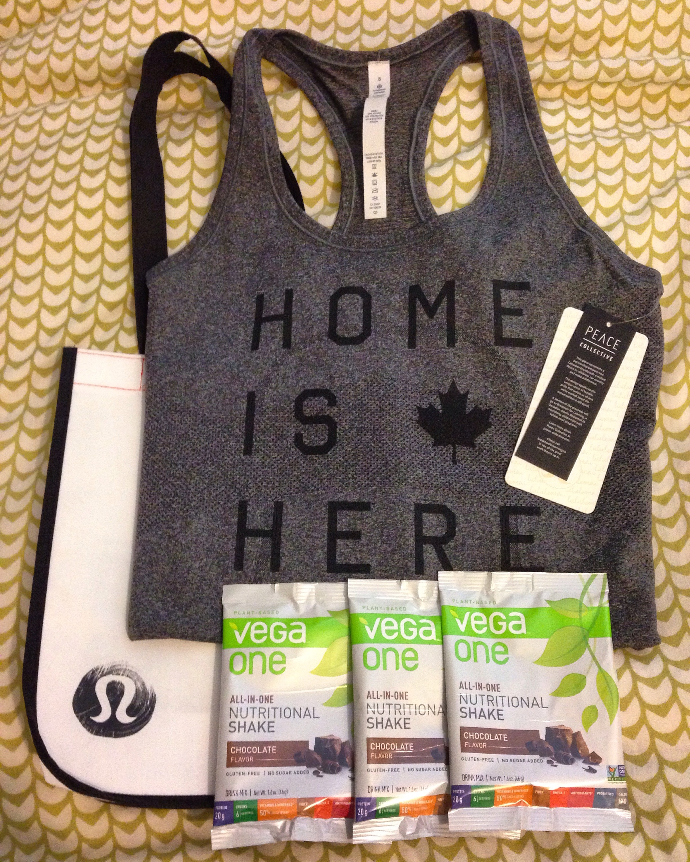 As for the shopping, I managed to make it out of Lululemon with one tank top. See I have some self control! And thank-you Vega for the samples of Vega One!