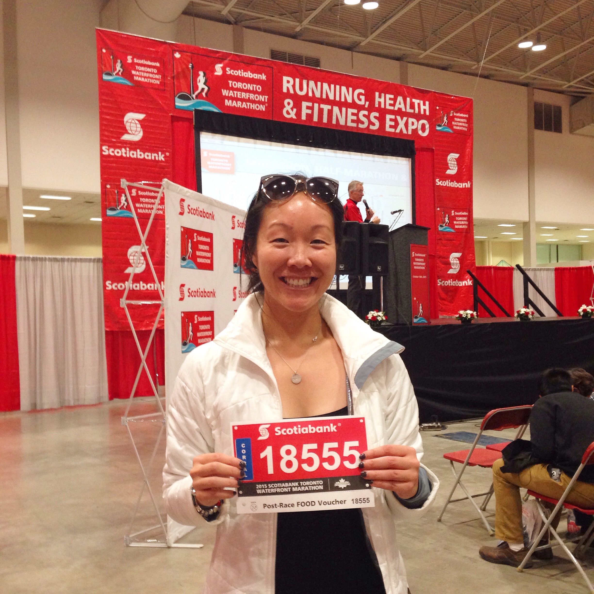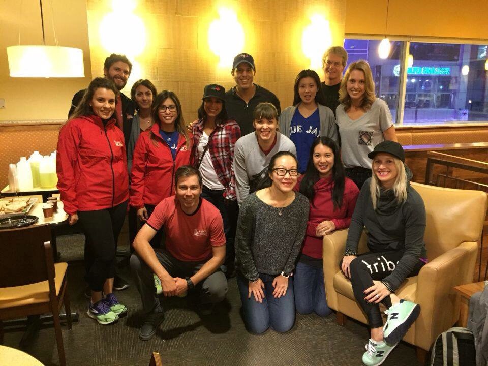 Friday evening, Canada Running Series hosted a dinner for the digital champions and community leaders. I chatted with some of the Canada Running Series staffers about organizing a race the size of the Scotiabank Toronto Waterfront Marathon. With more than 20,000 participants, it was interesting to hear about how many volunteers are involved, how early staff are required to be on-site race morning, and the work that goes on after the runners have finished – lots of action “behind the scenes” so that everything goes smoothly on race day. I thought the dinner was a nice way to relax and to chat with everyone about their plans and goals on Sunday.